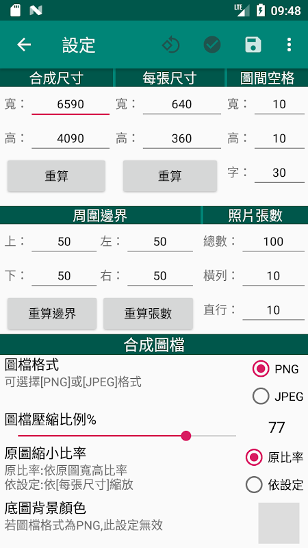 3. Boleh menyesuaikan format penyimpanan foto (PNG atau JPEG) dan nisbah mampatan