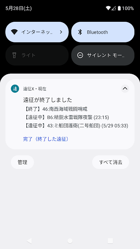 ※Android 14以上をご利用の場合、遠征終了時の通知時刻を正確にするには拡張設定から本アプリへの権限を許可してください。許可しない場合は予定時刻を過ぎてから通知を行います。