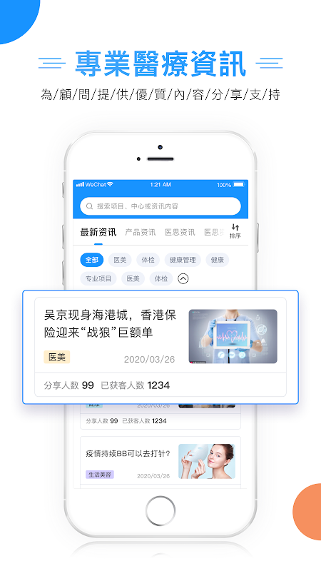 “醫思智慧客服"是一個打通UMH項目預約、主打顧問服務的專業領先平臺,集客戶分析、預約管理、客戶管理、名片分享的專業獲客工具