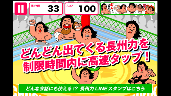 LINEスタンプで人気爆発中の「長州力」が登場する、タップ操作のみのお手軽ゲーム!