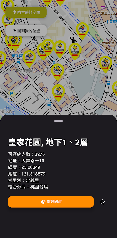 Nota: Apl "Peta Perlindungan Serangan Udara Taiwan" tidak mewakili kerajaan, entiti politik, agensi, organisasi atau jabatan gabungannya. Ia hanya menggunakan data yang tersedia secara umum untuk rujukan pengguna dan tidak menjamin ketepatan atau ketersediaan data ini.