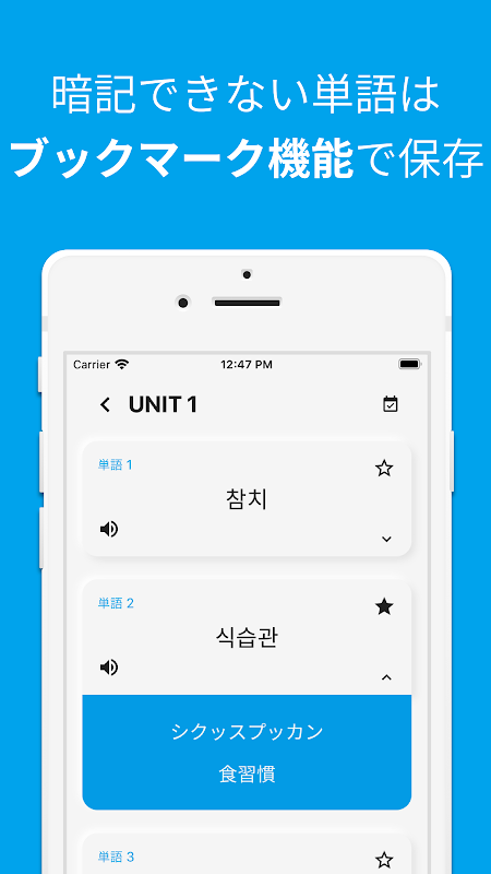Belajar perkataan adalah tentang pengulangan! Anda boleh menyemak bahasa Korea yang telah anda pelajari mengikut unit, kategori dan semua perkataan.
