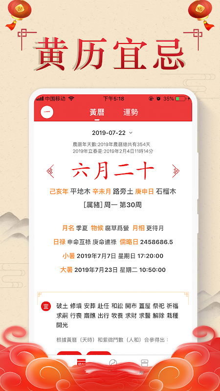 Ini adalah pilihan terbaik anda ketika melihat Huangli Checking dan mengelakkan pesta perayaan! Menyediakan fungsi praktikal seperti pertanyaan kalendar abadi, pertanyaan kalendar kuning, pertanyaan pantang larang, istilah solar festival, empat tiang dan lima elemen, carta aliran kumpulan dan sebagainya.