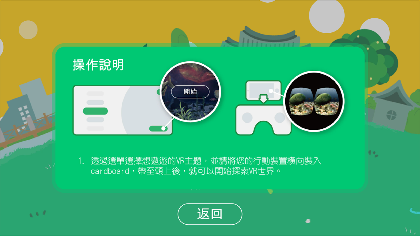 -將行動裝置橫向放置,並點選APP按鈕,開啟VR。