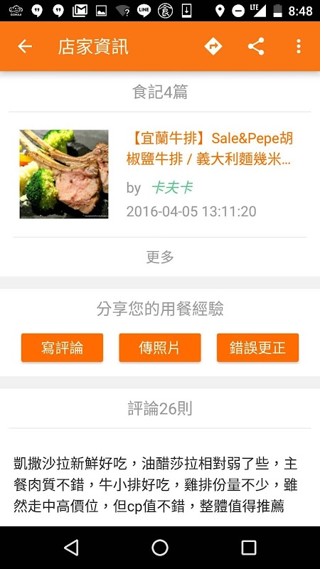 ● 可簡單分享您對餐廳的評價,寫評論,上傳相片