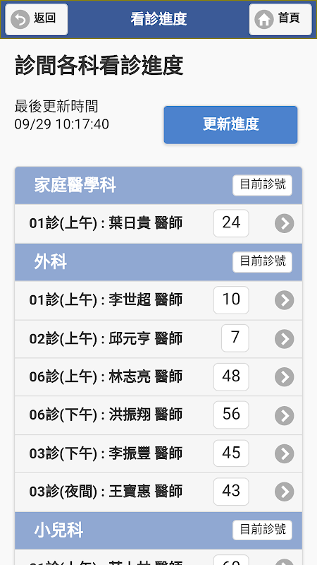 提供民眾來院門診看診掛號服務,可即時查詢門診班表與預約狀況,如預約是否額滿,門診停診與代診資訊等。