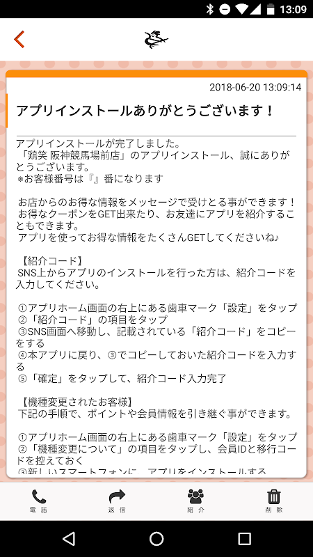 鶏笑のアプリをSNSを通じてお友達に紹介する事ができます。