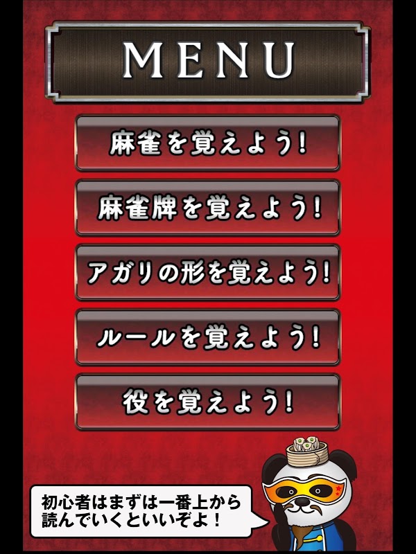アニメとテキストで麻雀を覚えよう! 超初心者向け麻雀入門アプリだよ! 移動時間ちゅうなどで読むだけでマージャンのルールや役、打ち方や遊び方を覚えちゃおう!
