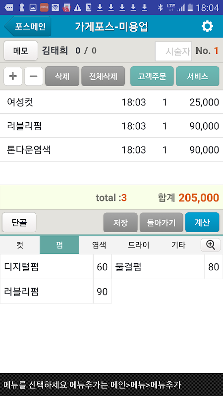 기존의 실물 포스에 못지않은 아니 오히려 다양한 기능으로 기존포스를 능가하는 제대로 만든 미용실 미용업전문 포스입니다.