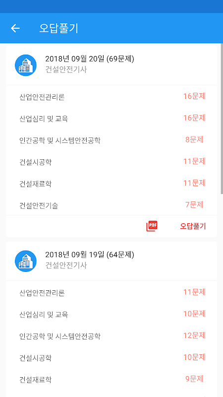 건설안전기사 공부를 위한 필수 앱 입니다. 산업안전관리론 산업심리 및 교육 건설시공학 건설재료학 건설안전기술등 과목별로 공부 해 보세요