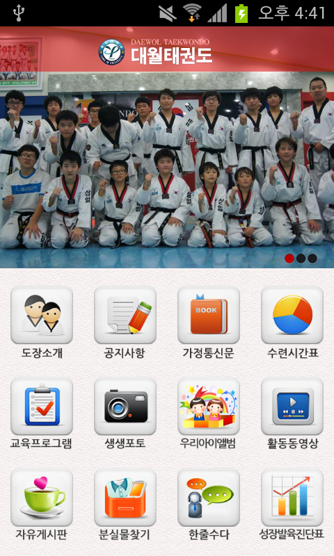 스마트시대를 맞이하여 경기 용인대 대월태권도에서 모바일 앱을 개설했습니다!