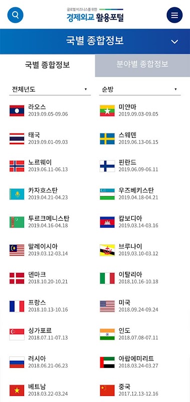 경제사절단 참가 해외 출장부터 단순 여행까지 해외에 나가실 때 유용한 출장국 정보를 무료로 볼 수 있습니다.