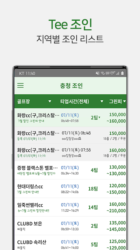 Tempat di mana anda boleh membuat tempahan pada hari yang sama seperti baki masa dan menyertai padang golf berhampiran Seoul