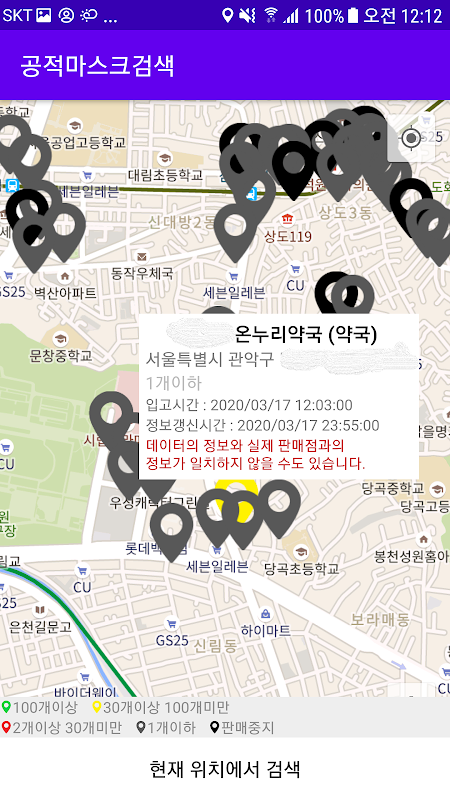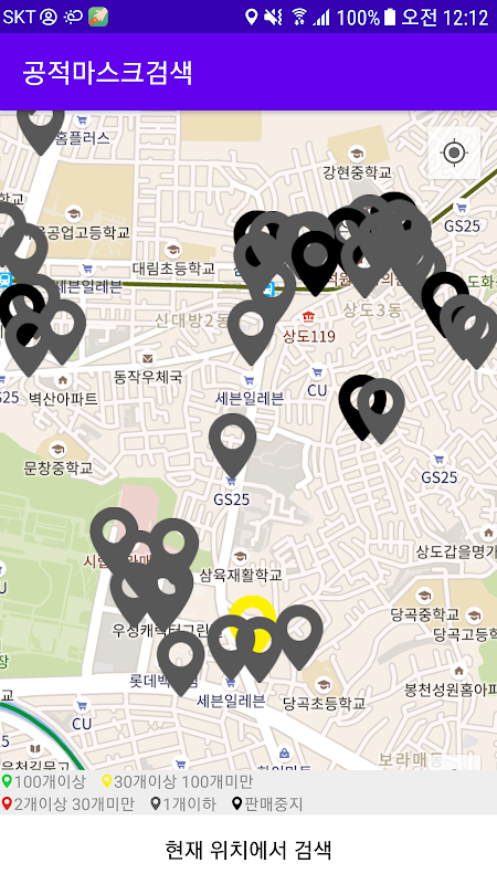 대한민국의 공적마스크 판매처의 재고상태를 검색하는 앱입니다.