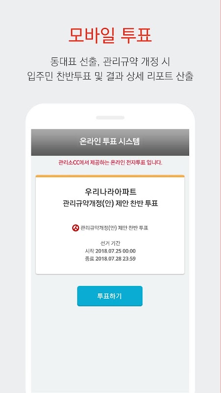 동대표 선출, 관리규약 개정 시 입주민 찬반투표 및 결과 상세 리포트 산출