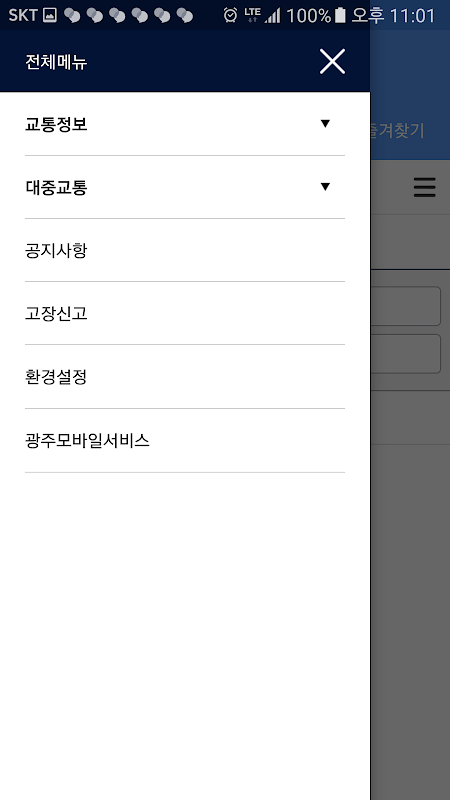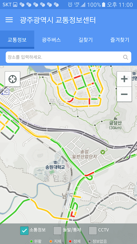 1. 교통정보 : 광주광역시의 실시간 도로교통정보를 지도기반으로 다양한 정보를 제공합니다.