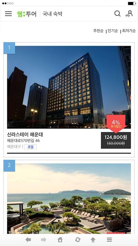국내숙박, 호텔, 펜션, 리조트 당일 할인 예약 - 웹투나잇 2.8