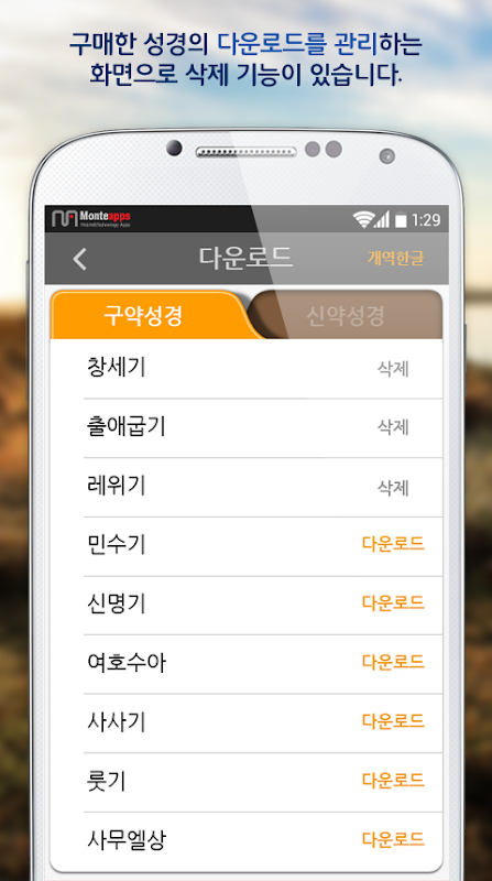 (배경음악 on/off 기능은 개역개정에만 해당됩니다. 개역한글은 배경음악이 있는 음원만 지원됩니다.)