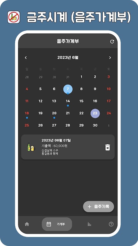 음주 가계부를 통해 음주기록을 저장하실 수 있습니다.