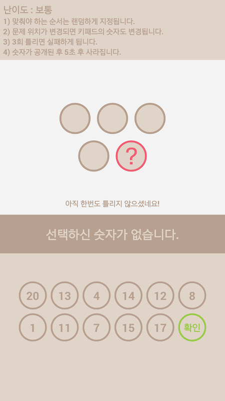 정말 쉽지 않은 난이도로 기억력을 키우고 싶으시다면 바로 매우어려움을 도전해 보세요.