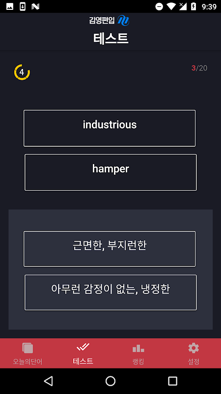 - 테스트를 통해 진짜 암기된 단어인지 확인 하고 랭킹을 통해 의지력 상승!