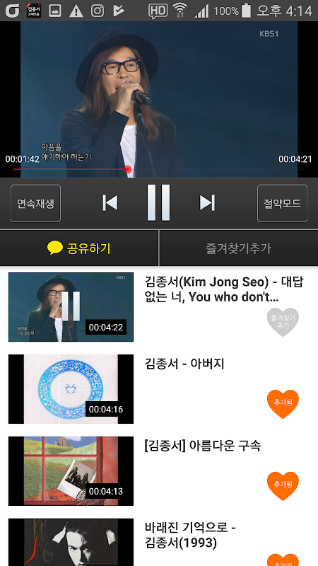 김종서 노래를 중간 광고 없이 연속으로 들을 수 있습니다.