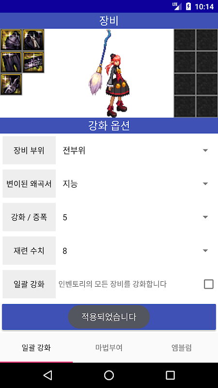 3. 장비를 장착하거나 설정 (강화/수치 수정/마법 부여/엠블럼 장착 등)