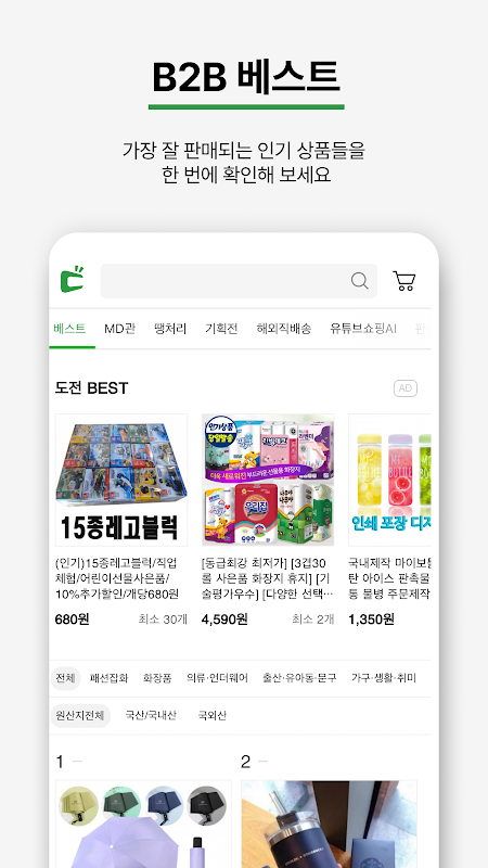 Pusat beli-belah B2B No. 1 Korea, borong! Kook Borong ialah pasaran terbuka B2B dalam talian terbesar di Korea.