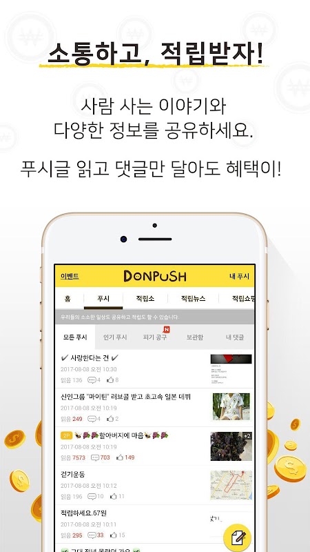 ◆ 돈푸시 donpush (돈푸쉬) 는 적립기능이 있는 커뮤니티 입니다.