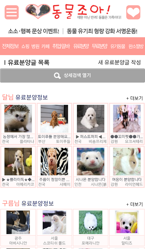 Versi lama 동물조아-반려동물(애완동물x)·실종·유기동물 보호·분양·입양 동물병원·카페·미용·호텔 홍보