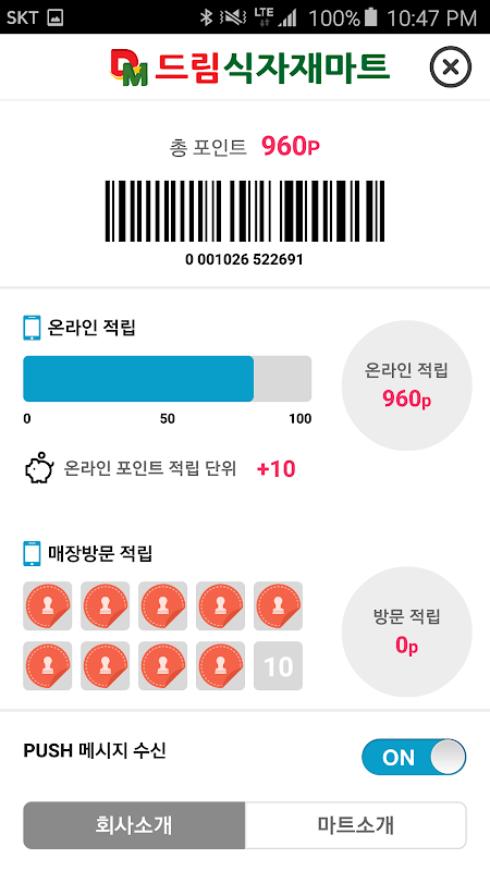 마트를 방문해서 포인트를 적립하세요.