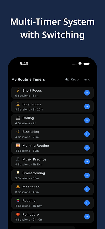 Tukar automatik sesi kerja dan rehat berdasarkan tetapan anda, mengekalkan aliran anda.