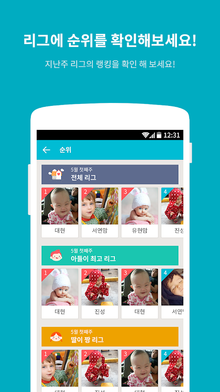 ● 매일매일 펼쳐지는 개성있는 아기사진 콘테스트! 리그에 참가하세요!