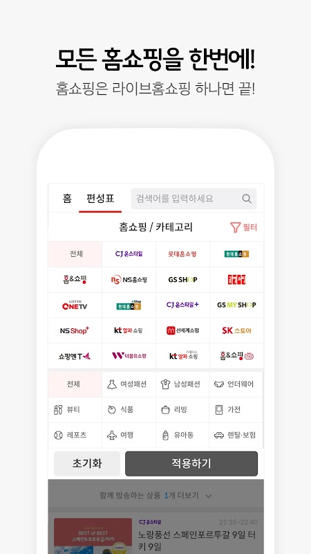 라이브홈쇼핑-TV홈쇼핑 최저가, 편성표, 생방송 알림 1.37.53