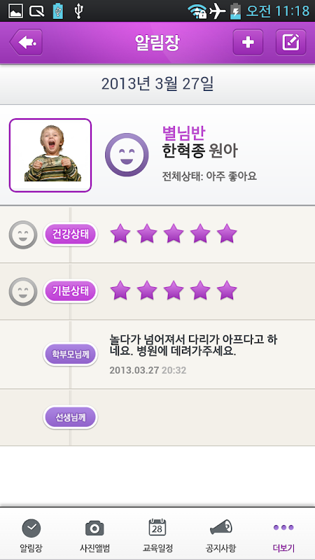알림장, 사진앨범, 교육일정, 식단의 주요기능 뿐만 아니라