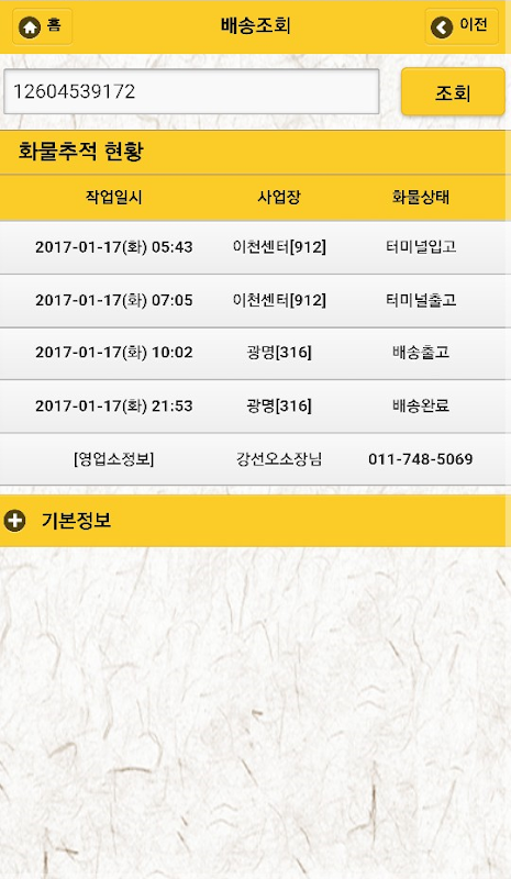 ♧ 배송 이력 조회 : 최근 10일간의 로젠 택배 배송 정보 확인 기능