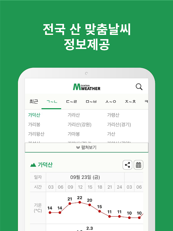 Mengenai 마운틴웨더 -전국 산검색, 등산날씨 한눈에!