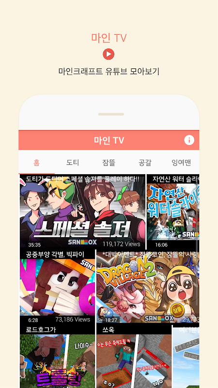 앱에 포합된 유튜브영상 : 도티 잠뜰 공갈 잉여맨 프링코믹스 램램 주민이야기 들의 영상을 볼수 있습니다.