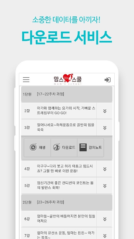 예비 엄마, 아빠, 부모님들을 위한 맞춤 강의를 제공하는 맘스스쿨의 모든 강의를 편리하게 이용하실 수 있도록 제작되었습니다.