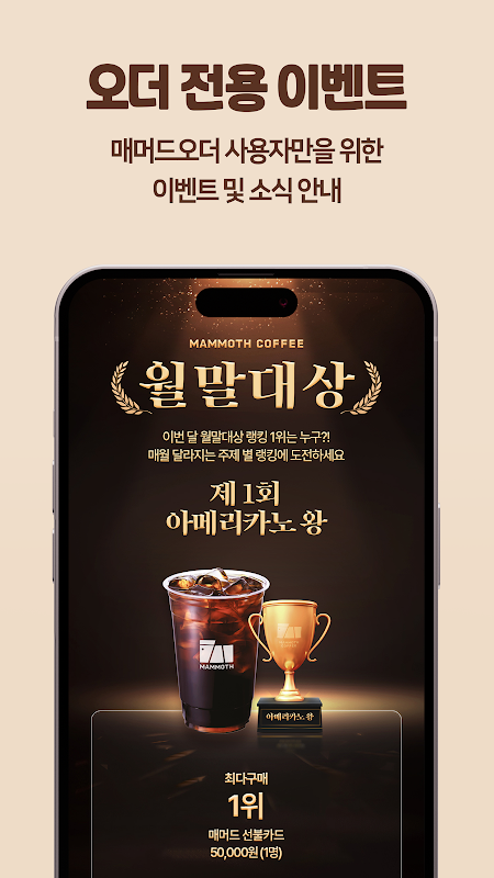 Dengan memilih kedai Mammoth Coffee berdekatan, anda boleh memesan minuman dengan mudah dan mengambilnya dengan cepat.