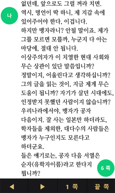 ◈ 학창시절에 은사님에게서 맹자의 두 구절을 전달받게 된 경위도 ‘선생님과 나’와의 대화형식으로 풀었습니다.