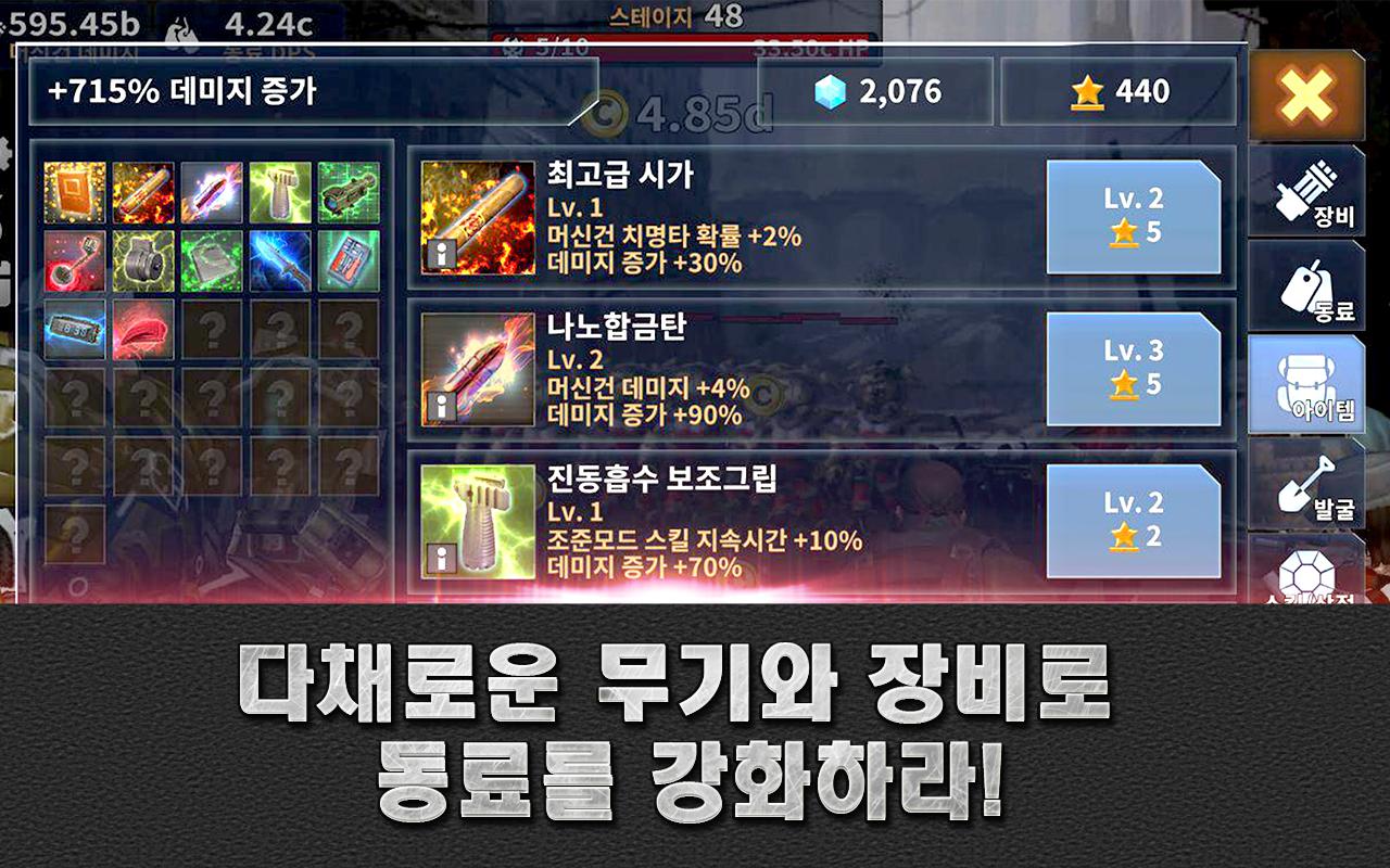 희귀 아이템을 통한 강력하고 화려한 스킬로 좀비 소탕