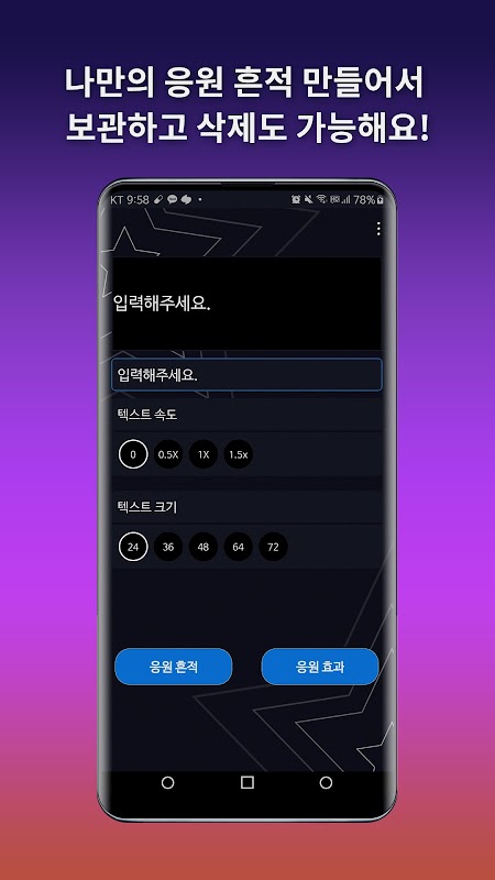 - 배경 컬러 뿐만 아니라 이미지로도 나만의 응원 화면을 꾸밀 수 있어요.