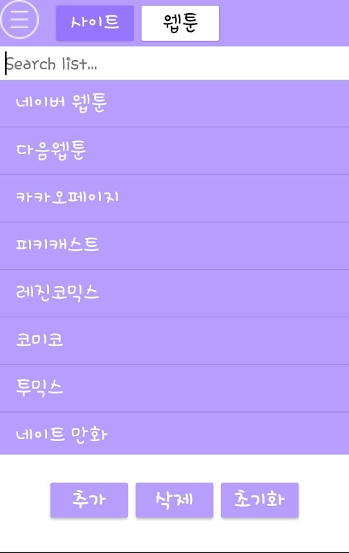 웹툰- 다양한 사이트들의 웹툰을 하나로! 앱에 없는 웹툰은 자신이 직접 추가할 수 있습니다.