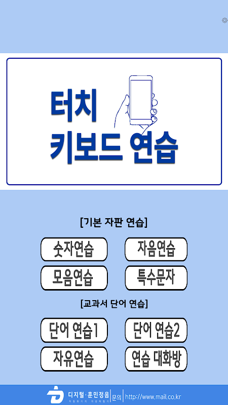 Ini ialah program latihan papan kekunci untuk pelajar celik huruf. Ia berguna untuk pelajar belajar dengan Hangul.