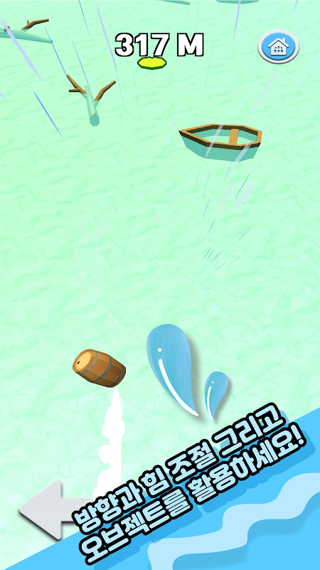 Kendalikan pelbagai lontaran dan kuatkan lontaran itu untuk membuat pelontar air semakin jauh!