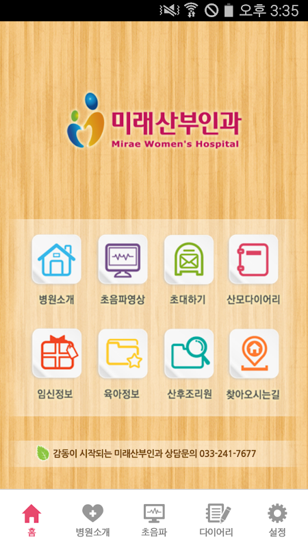 감동이 시작되는 곳, 춘천에 위치한 미래산부인과 스마트폰 애플리케이션입니다.