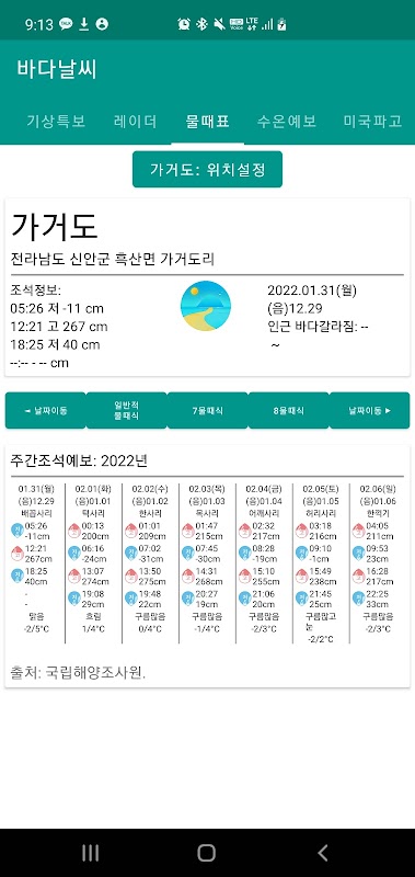 Versi lama 바다날씨(일본 파고, 내일 날씨)