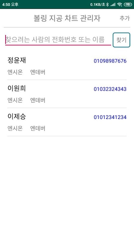 볼링 지공을 위한 차트를 관리하는 앱입니다.