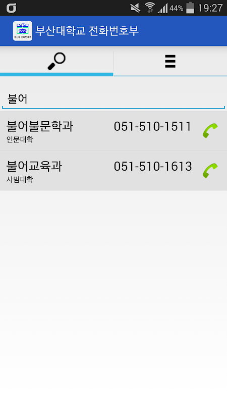 검색기능과 '가나다'순으로 정렬 된 부서별 리스트를 지원합니다.